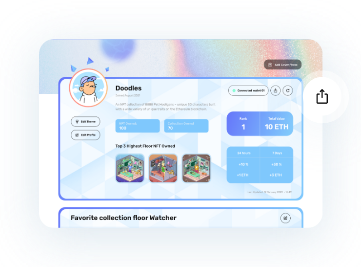 Built by NFT collectors, We feel you and understand what are your everyday needs. Our platform focus and enable you to fully own and manage your collections while displaying them as intended freely and easily.